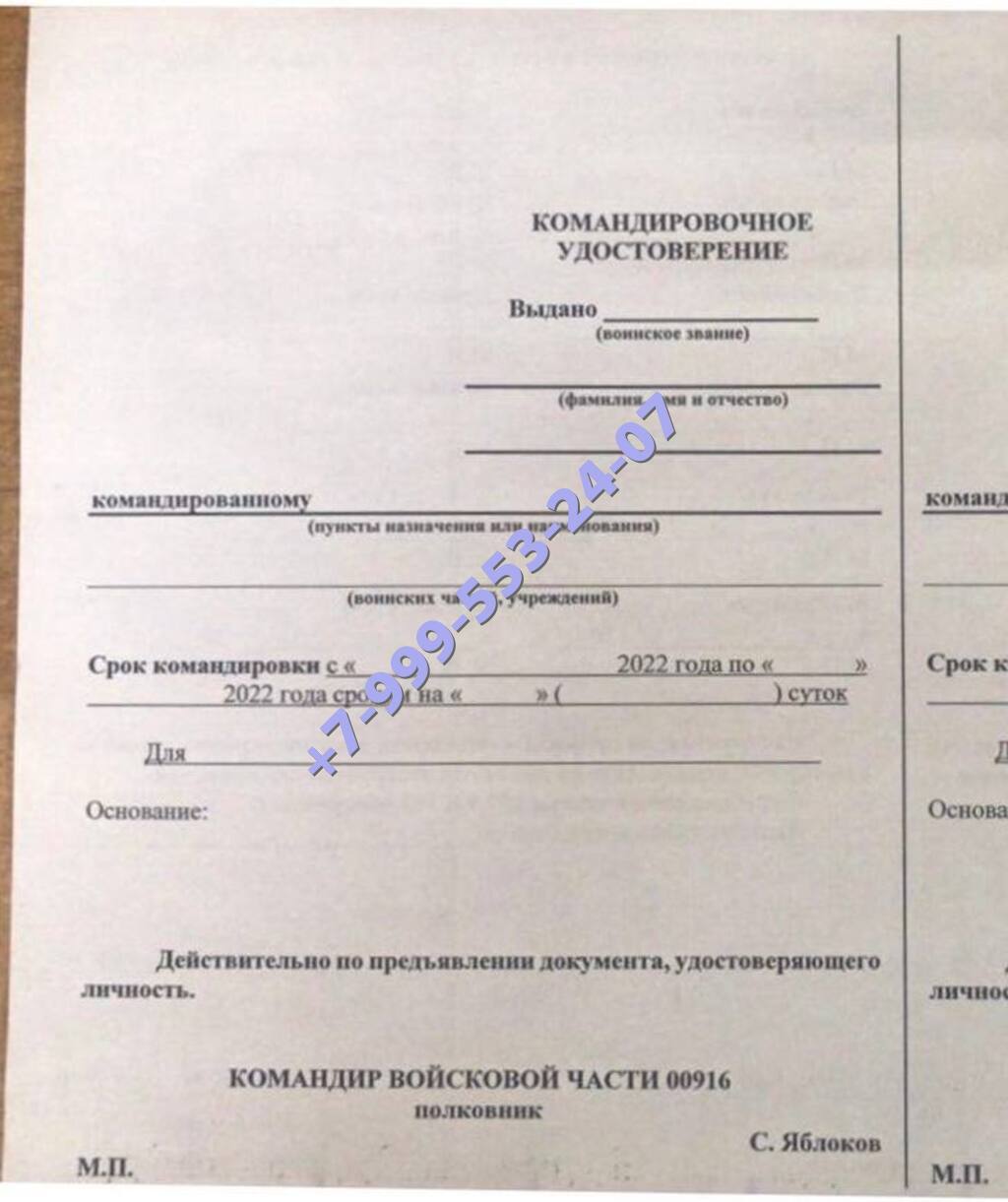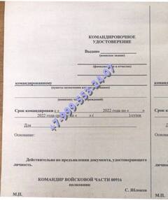 Заказать командировочное удостоверение военнослужащего в Андреаполе можно и по иным причинам, например, необходимо срочно ехать на учения или в зону боевых действий. В таком случае следует обращаться к руководству с заявлением. Если человек потерял, или испортил документы, он может обратиться в нашу компанию. Купить командировочное удостоверение военнослужащего с доставкой мы предлагаем недорого.